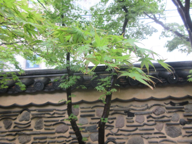 雨でしっとりした庭園は、アオカエデの新緑が美しいです。